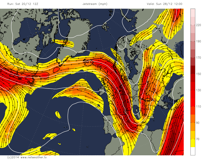 Voici la position du jet stream pour le 28 dec, le potentiel grandit :