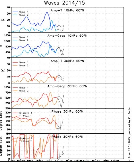 Salut matt76.. A mon avis, tous les phénomènes d'ondes que nous avons dans l'émisphère nord est du à El Ninio. Nous sommes dans la première couche de l'atmosphère, la troposphère. Mon image vient de la stratosphère. a 10 hpa nous avons un vortex et un anticylone statosphèrique. Les Displacement Events correspondent à la formation d'un anticyclonique stratosphérique à grande échelle au niveau des Aléoutiennes, permettant le déplacement (plus ou moins accentué) du vortex polaire stratosphérique vers l'Atlantique et le continent européen. :rouge: Quant tu lance une pierre dans l'eau, tu créer un déplacement d'un flux (notre atmosphère). le déplacement de ce flux descend de la stratosphère vers la troposphère.. et la c'est :freeze: :freeze:
