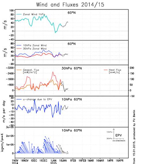 L'AO serait vu en négatif. notre vortex polaire, toujours sous l'influence d'un SSW mineur est affaiblit. Fin janvier nous aurons un displacement event. Reste à surveiller les vents zonaux pour que le vortex ne reste pas trop concentré sur lui même.Donc a surveiller l'AO. On y met un petit coup d'ondes 1 depuis le dessus!! On pourra peut être observer un réchauffement..( majeur) :coeur: il faudra suivre le renversement des vents zonaux. El Nino et ces ondes viennent au grand galop comme les sauveurs de cet hiver en ocillant comme des malades toute la cellule polaire , et la c'est :bombe: ou :caca: .. j'ai fais mon choix :mrgreen: Ce sont des prévisions.. Attendons.. :flowers: