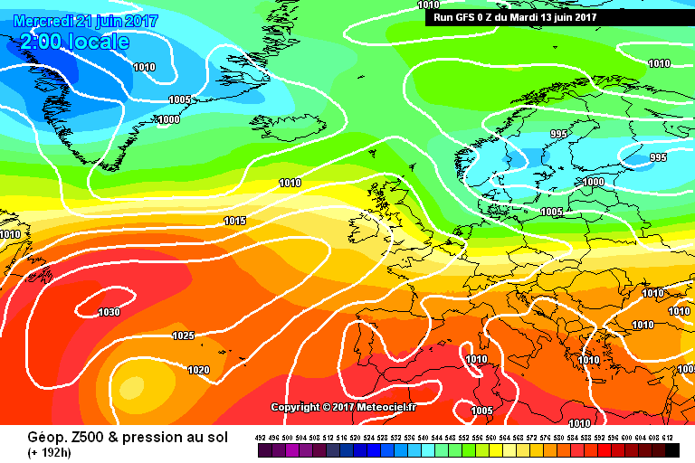 Nous aurions dans cette configuration une dépression sur l'Atlantique et des hautes pressions sur l'Allemagne et au milieu notre pays dans une véritable fournaise :!: