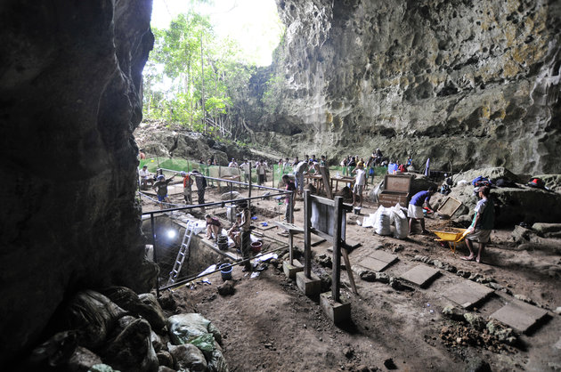 A handout image made available by Florent Detroit and taken on August 9, 2011 shows a view of the excavation in the Callao Cave in the north of Luzon Island, in the Philippines, where an international multidisciplinary team discovered a new hominin species, Homo Luzonensis. - An international multidisciplinary team, co-led by a MNHN senior lecturer of the H & E department, Florent Détroit, discovered a new hominin species, Homo Luzonensis, during the excavation of Callao Cave, situated on Luzon island, Northern Philippines. Published in the journal Nature, the study of the fossils dated to 50 to 67 000 years highlights a singular mosaic of morphological characteristics that differentiates Homo luzonensis from other species of the genus Homo and underlines the major role played by Island Southeast Asia in the evolutionary history of hominines. (Photo by Florent DETROIT / Florent DETROIT / AFP) / RESTRICTED TO EDITORIAL USE - MANDATORY CREDIT "AFP PHOTO / Florent DETROIT / Florent DETROIT" - NO MARKETING - NO ADVERTISING CAMPAIGNS - DISTRIBUTED AS A SERVICE TO CLIENTS