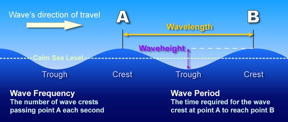 Anatomie simplifiée des vagues océaniques. (NOAA)