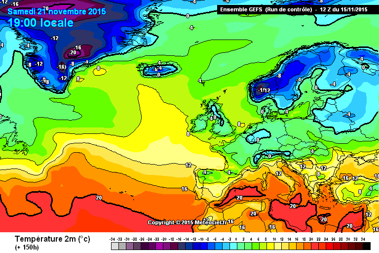 Le coup de froid prévu le week-end prochain semble se confirmer. Il ne s’agira pas bien-sur d’une vague de froid mais d’un coup de froid classique humide entre des hautes pressions sur l’Atlantique et un système dépressionnaire sur l’est de l’Europe. Grace à ce flux de nord nous pourrions assister à nos premières chutes de neige dans certaines zones surtout sur les premières hauteurs et nos massifs. Pour la suite tout reste encore incertain vu l’échéance mais il semblerait que la dorsale sur l’Atlantique est du mal à résister