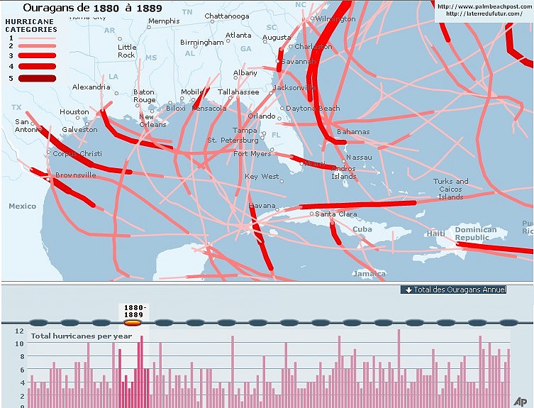 Les Ouragans du Golf du Mexique depuis 150 ans Ouragans sur la seule année 2005