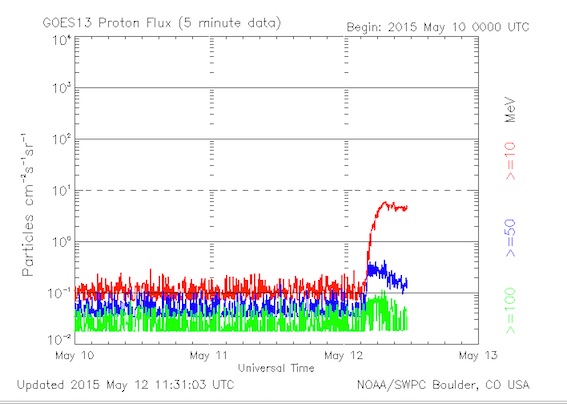 PS: Ce sont les graphiques des rayons x et des protons haute énergie ( plus ou moins la vitesse de la lumière pour les protons) et non le plasma qui met 2 ou 3 jours à nous atteindre selon l'érosion dans l'espace et l'angle d'attaque... (aurores)