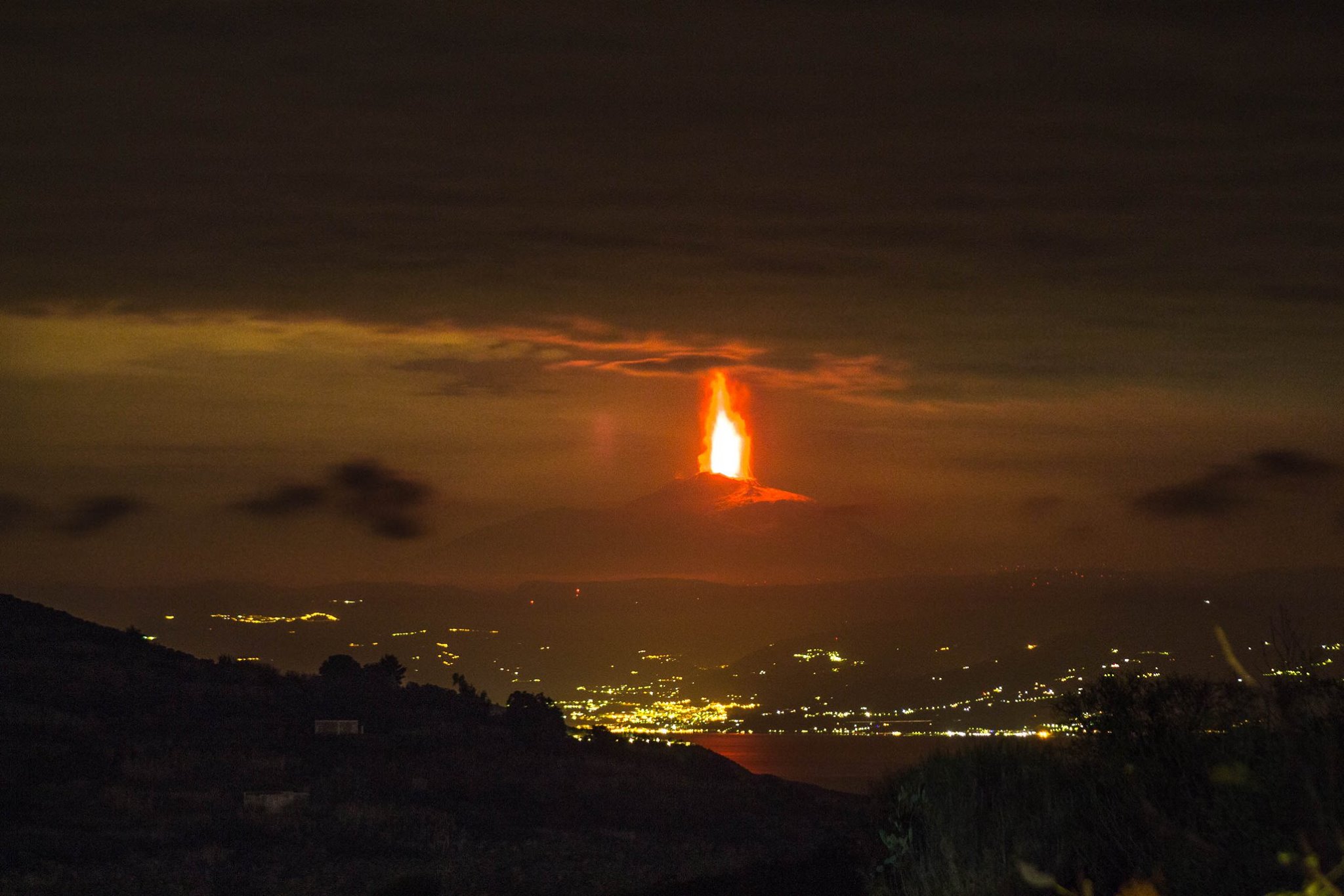 Éruption du volcan Etna en vue de lipari (îles éoliennes)