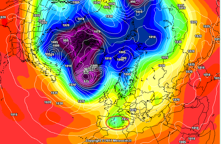 Ce que je trouve d'assez remarquable, c'est la succession de décrochage venant directement de Vortex et s’écoulant directement vers la Méditerranée pour s'isoler et provoquer certainement des pluies assez abondantes entre le sud de la France et l'Espagne.