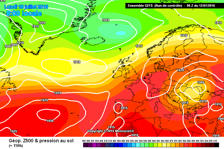 Plus elle parviendra à attirer à elle notre ex-dépression Américano-Canadienne vers la Scandinavie, moins la dépression qui arrive à sortir du Labrador progressera vers l'Europe, ce qui la rendrait alors moins virulente et du même coup moins rafraîchissante en milieu de semaine prochaine.