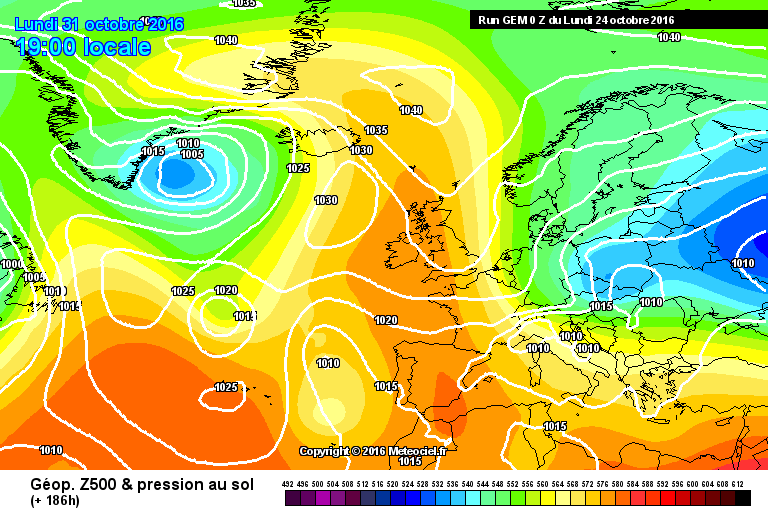 Sachant qu'il n'est pas improbable qu'une dépression sorte de la masse froide ouest-Américaine pour prêter main-forte au bout de vortex Polaire mais aussi que la sortie de la goutte froide d'entre Canaries et Açores pourrait augmenter l'emprise des hautes pressions sur l'Europe de l'ouest, on se retrouve en cette fin de décade avec déjà une rude bataille pour l'après-Halloween! :langue3: