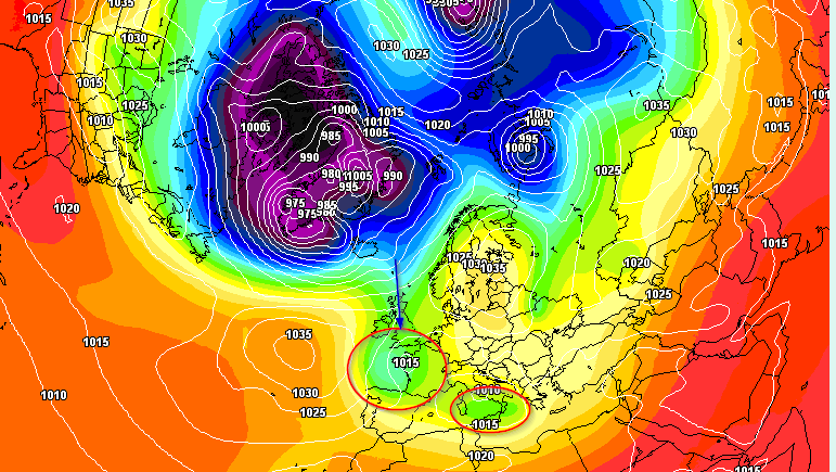 Ce que je trouve d'assez remarquable, c'est la succession de décrochage venant directement de Vortex et s’écoulant directement vers la Méditerranée pour s'isoler et provoquer certainement des pluies assez abondantes entre le sud de la France et l'Espagne.