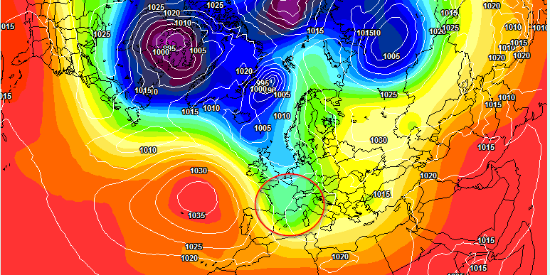 Assez grosse incertitude, mais la tendance est au retour des hautes pression par l'Ouest mais c'est le talweg qui sème le doute. Il aurait tendance à stationner en mer du Nord, ce qui pourrait compromettre le retour de l'anticyclone. Tout cela redemandera à être analyser d'ici ce week-end.