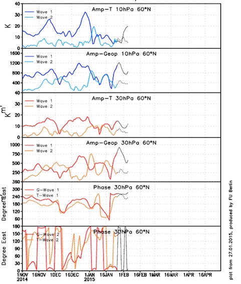 l'activité était beaucoup plus forte sur novembre et puis aussi au début de l'année. On peut tout de même remarquer que la succession de petites tempêtes géomagnétiques sur décembre 2014 a également une forte corrélation avec le SSW de début janvier. Il semble y avoir la même corrélation avec le prochain SSW puisque l'activité solaire est en train de repartir (je parle toujours par rapport à la Terre et non sur l'observation stricte du soleil!).