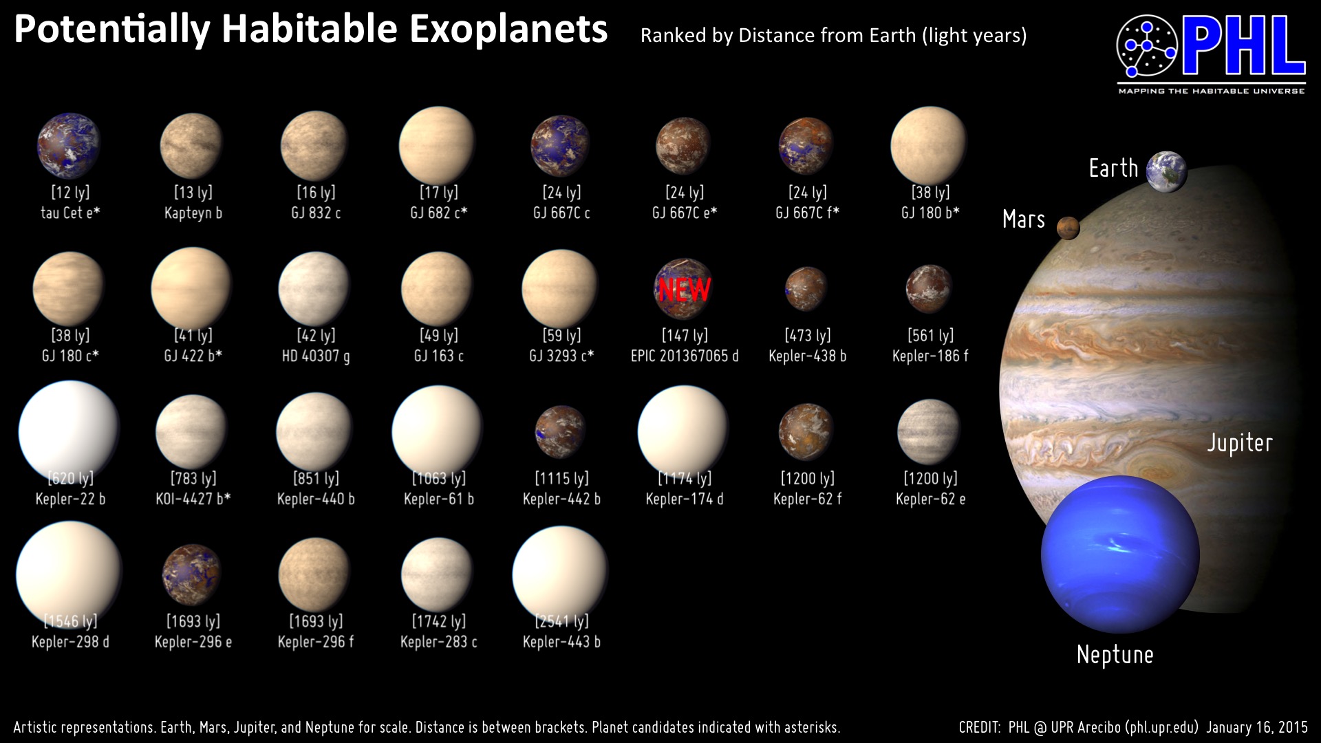 Les planètes suivantes viennent d'être découvertes. Ces planètes telluriques de type Terre ou super Terre ont la particularité de se trouver dans la zone habitable de leur étoile. Le point commun de ces planètes est la méthode de découverte appelé Transit. Ces planètes ont été découvertes fin janvier 2015 par la sonde Kepler. En voici le contenu et leurs caractéristiques...