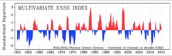 Pour ceux qui se poseraient la question pourquoi El Nino fable, El Nino et l'index PDO sont sur la mĂŞme courbe...