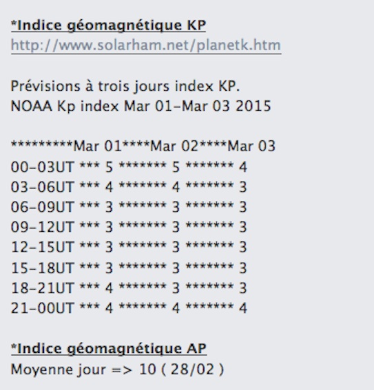 Je voulais mettre le lien, au 1er mars 2015 de l'activité des aurores.