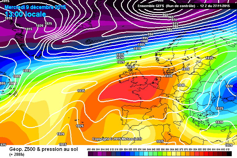 Voici une carte GFS émise par les allemands pour le 13 décembre 2015 :