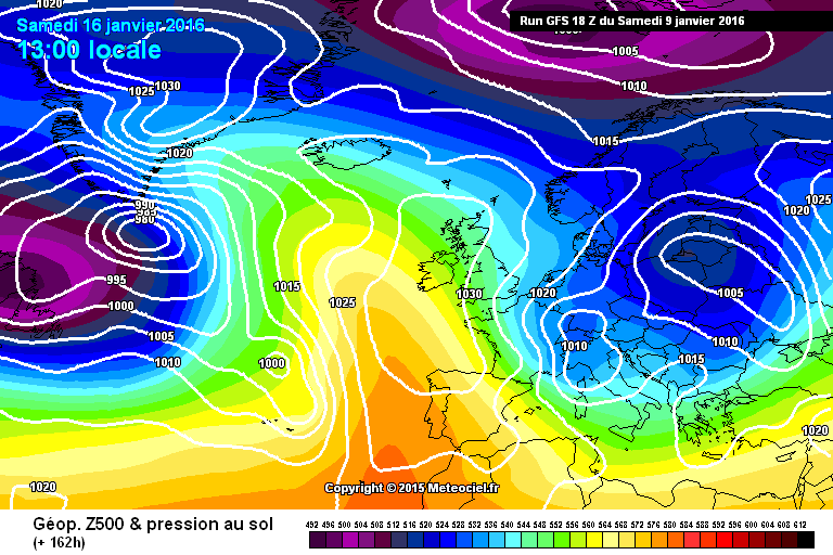 La version la plus pessimiste où la dépression Açorienne pousse les HP trop à l'est X(