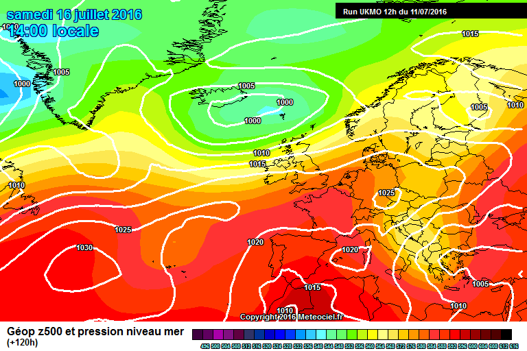Cette fois c'est l'inverse qui se produirait d'après les dernières sorties : Les hautes pressions protègeraient davantage les règions septentrionale grace à la prèsence de l'anticyclone sur l'Angleterre ou l'Europe du Nord (il faudra suivre la position exact des centres d'action pour notre prochain week-end). Et oui vu l'échéance il restera à affiner tout cela.