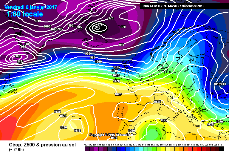 Ainsi, le morceau de vortex Canadien s'en va s'allier à la dépression Groënlandaise au niveau de la Scandinavie, laissant la place sur l'Atlantique à une nouvelle dorsale.