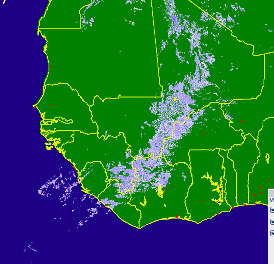 On peut même y voir des averses !!! qui tombes un peu partout en passant de la Guinée jusqu'en Algérie