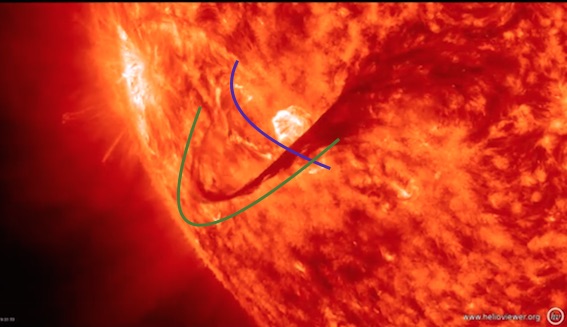 Mais je ne trouve toujours pas de réponse avec le champ magnétique et l'éjection du filament... Si je comprend bien, les tornades font parties d'un filament? Et quant le filament croise une autre boucle magnétique, c'est l'éjection?